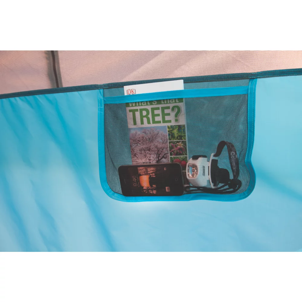 Everyone will look forward to family time when you take them camping in the Coleman® Octagon 98 8-Person Tent. You’ll enjoy an open and roomy living area with the unique ocagon shape and vertical walls of this tent. If it rains, this tent Keeps You Dry…Guaranteed™, thanks to the WeatherTec™ system, which uses a tub floor with patented corner welds, protected seams, and a covered zipper to help keep water out. Meahwhile, the strong frame is tested to withstand 35+ MPH winds. You’ll get even more weather protection from an included rainfly that has vents built into it to increase air circulation to help you stay cool and comfortable. Setup is simple with the color-coded poles and fly, the patented pin-and-ring system, and snag-free Insta-Clip™ suspension. Illumiline™ reflective guy lines are more visible at night so you don’t get tripped up if you need to take a walk in the dark. Two doors make it easy to enter and exit your tent. Inside, there’s enough room to stretch out on two queen-sized airbeds, and storage pockets help to keep small items organized. When it’s time to head home, the tent fits into an included carry bag for easy storage and transport.
